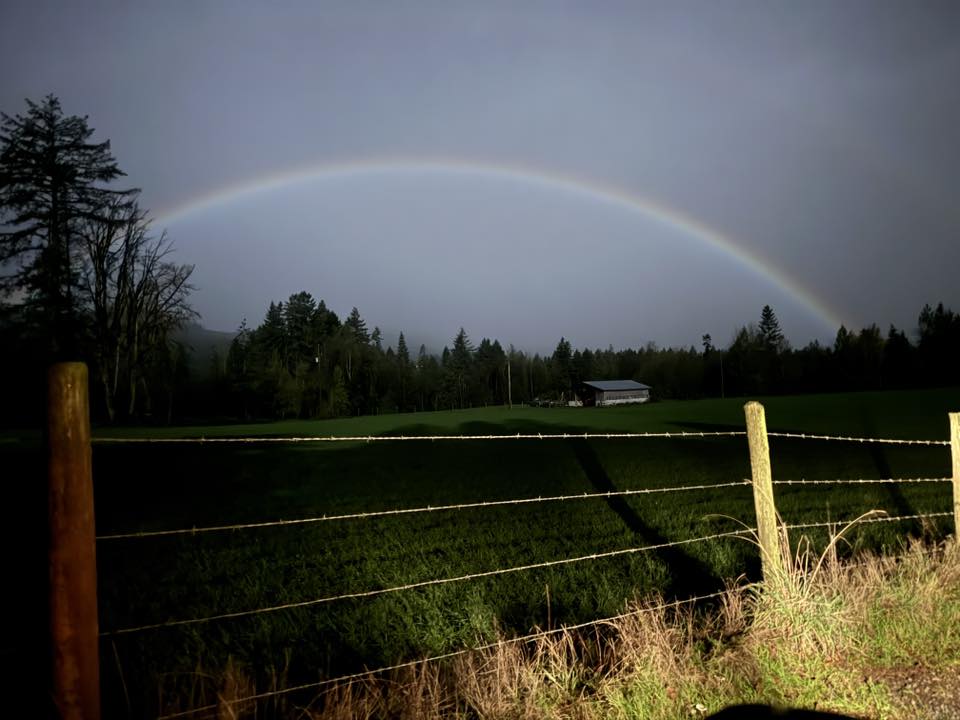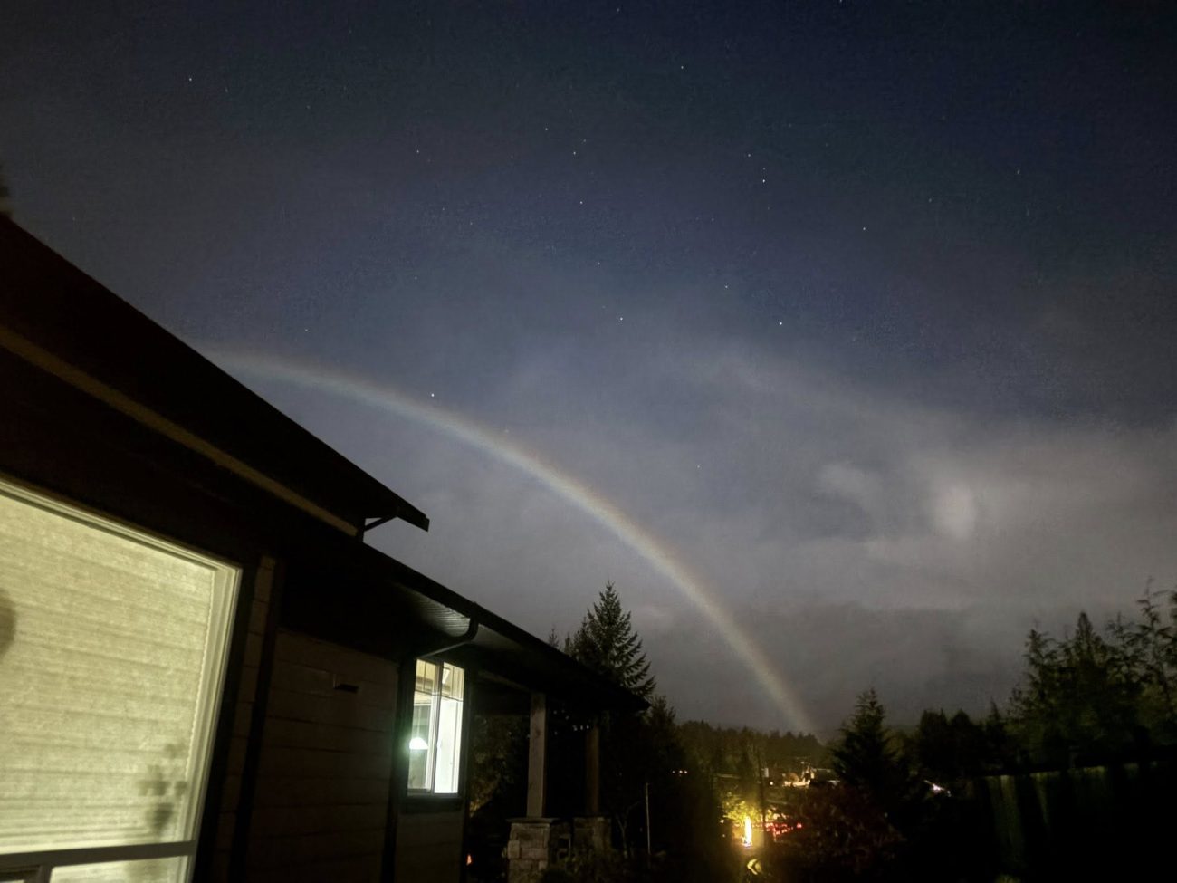 “The moon was up bright behind me but ahead of me where I was looking was the rainbow. It was misty rain and wind. I actually had no idea what I was looking at because it was pitch black out besides the moonlight and I’d never seen anything like it.”