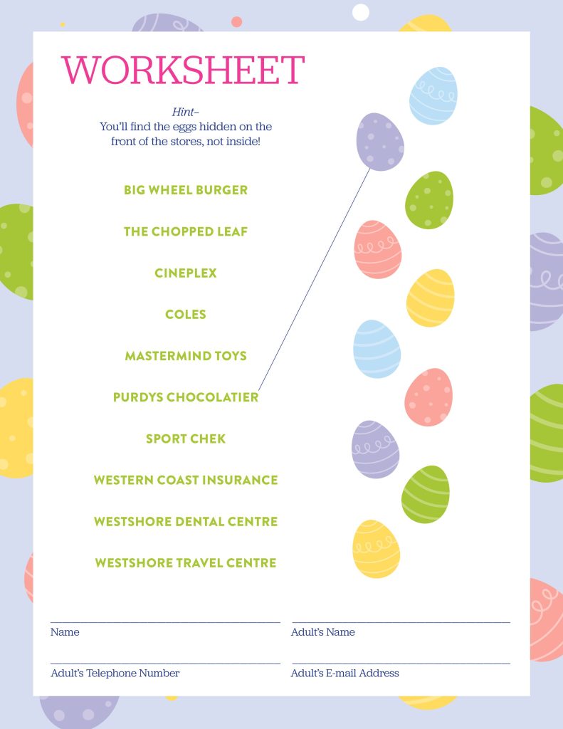 - Pick up an Easter Egg Hunt worksheet from The Chopped Leaf, Coles, or Western Coast Insurance—or download it from the WTC website